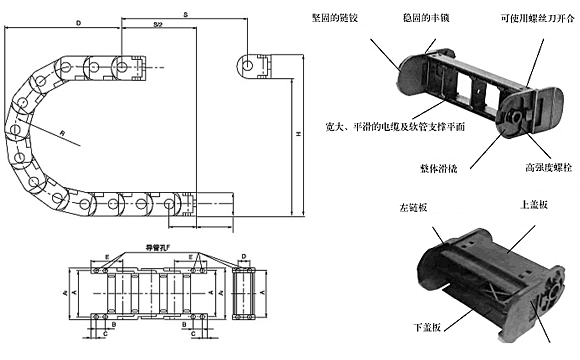 (1)移动速度快、允许温度-40/130 ℃,颜色黑、红、黄、白,允许承重每增加1米可加0.01kg.