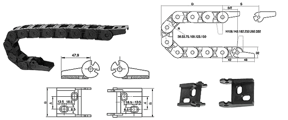 (1)移动速度快、允许温度-40/130 ℃,颜色黑、红、黄、白,允许承重每增加1米可加0.01kg.