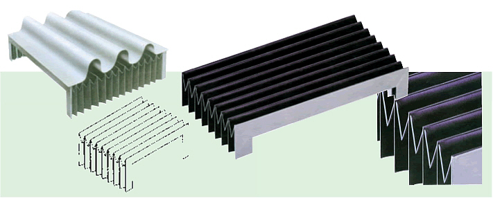 特点: 此类护罩具有不怕脚跺、硬物冲撞不变形、寿命长、密封好和运行轻便等特点 护罩行程长,压缩小,长度的比值为1:10 此折叠护罩中最先进的一种形式,它能弥补各种 护罩解决不了的问题。这类护罩在世界占有领先地位。