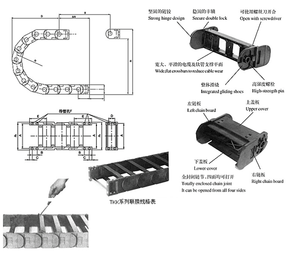 (1)移动速度快、允许温度-40/130 ℃,颜色黑、红、黄、白,允许承重每增加1米可加0.01kg.