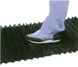 特点: 此类护罩具有不怕脚跺、硬物冲撞不变形、寿命长、密封好和运行轻便等特点 护罩行程长,压缩小,长度的比值为1:10 此折叠护罩中最先进的一种形式,它能弥补各种 护罩解决不了的问题。这类护罩在世界占有领先地位。