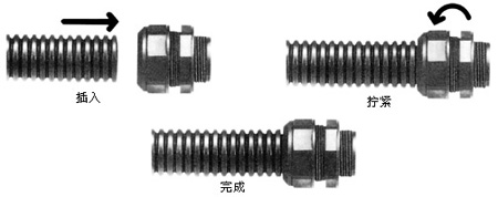 接头能整圈完整卡在软管肋槽中,以达到最大牢固程度。
