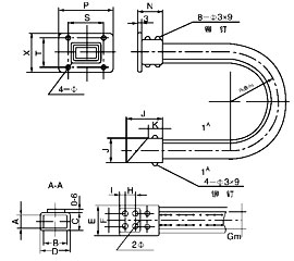 JR-2型矩形金属软管接头尺寸及规格参数表 |