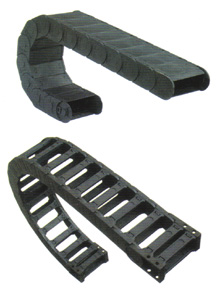 塑料拖链的用途与特点 ◆适合于使用在往复运动的场合,能够对内置的电缆、 油管、气管、水管等起到牵引和保护作用。 ◆拖链每节部能打开,便于安装和维修。运动时噪音 低、耐磨、可高速运动。 ◆拖链已被广泛应用于数控机床、电子设备、石材机 械、玻璃机械、门窗机械、注塑机,机械手、起重运 输设备、自动化仓库等。