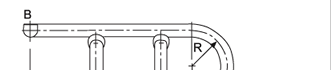 ◆相同系列的拖链内高、外高、节距相同.拖链内高、弯曲半径R可有不同的选择。