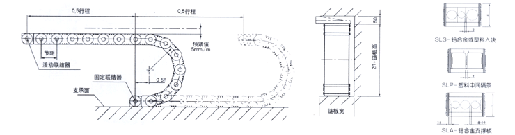 拖链的支撑板宽度为15mm至600mm,孔与孔之间的间隔量为5mm。