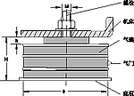将所需垫铁放入机床地脚孔下,旋入螺栓,落下机床,逐个向垫铁内充入压缩空气,使垫铁逐个升高3mm。确认螺栓和地脚孔壁不磨擦后。旋紧螺母。继续充入压缩空气,使机床逐个升高7mm。然后充气调节机床水平,调节范围H值±6mm,(工作内压为0.5Mpa)。